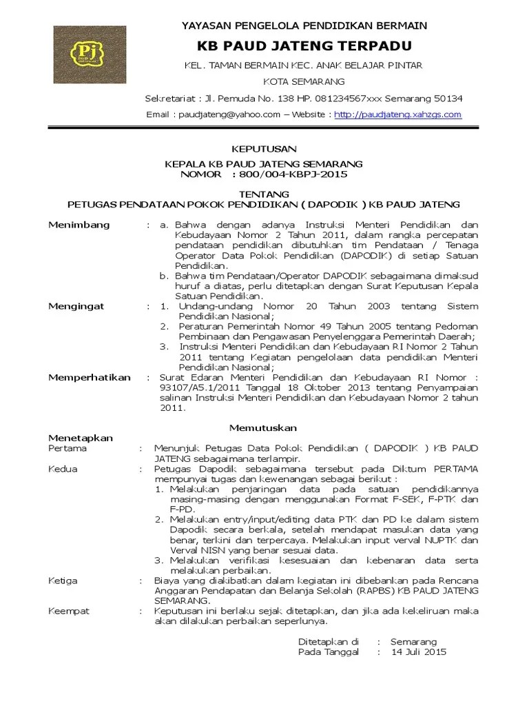 Contoh Sk Pembagian Tugas Tk Paud Jateng - Contoh Sk Pembagian Tugas Mengajar Guru Tk Paud Administrasi Tk Paud / Download buku administrasi paud tk kb tpa sps .